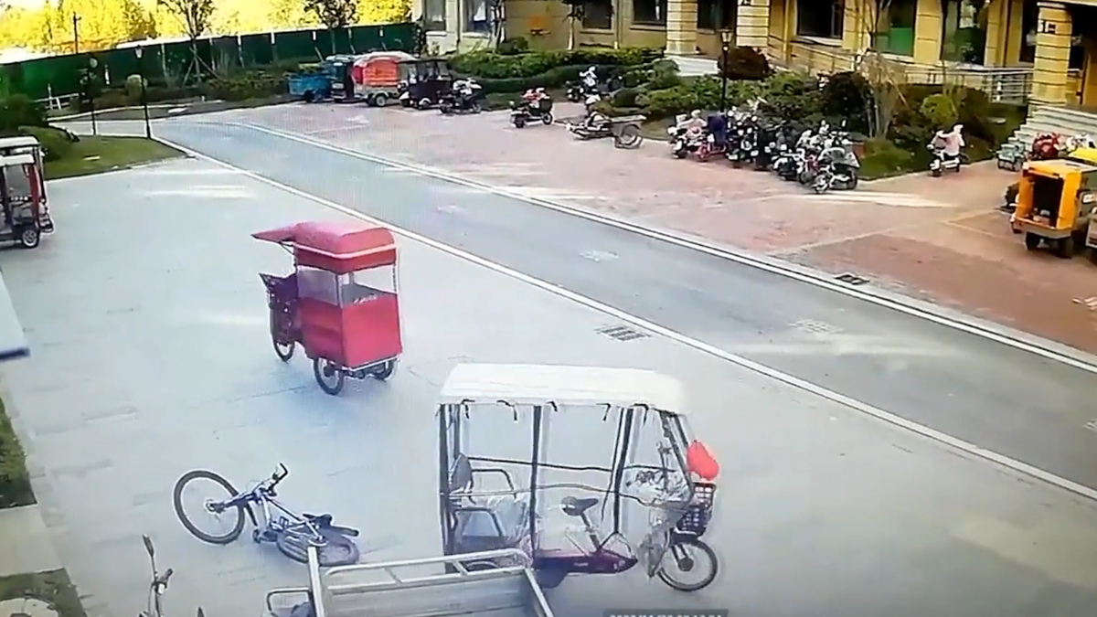 Gió giật mạnh ở TP Hà Trạch (Sơn Đông, Trung Quốc) khiến 2 chiếc xe ba bánh không người lái chạy tự do và đỗ vào bãi đậu xe một cách hoàn hảo.