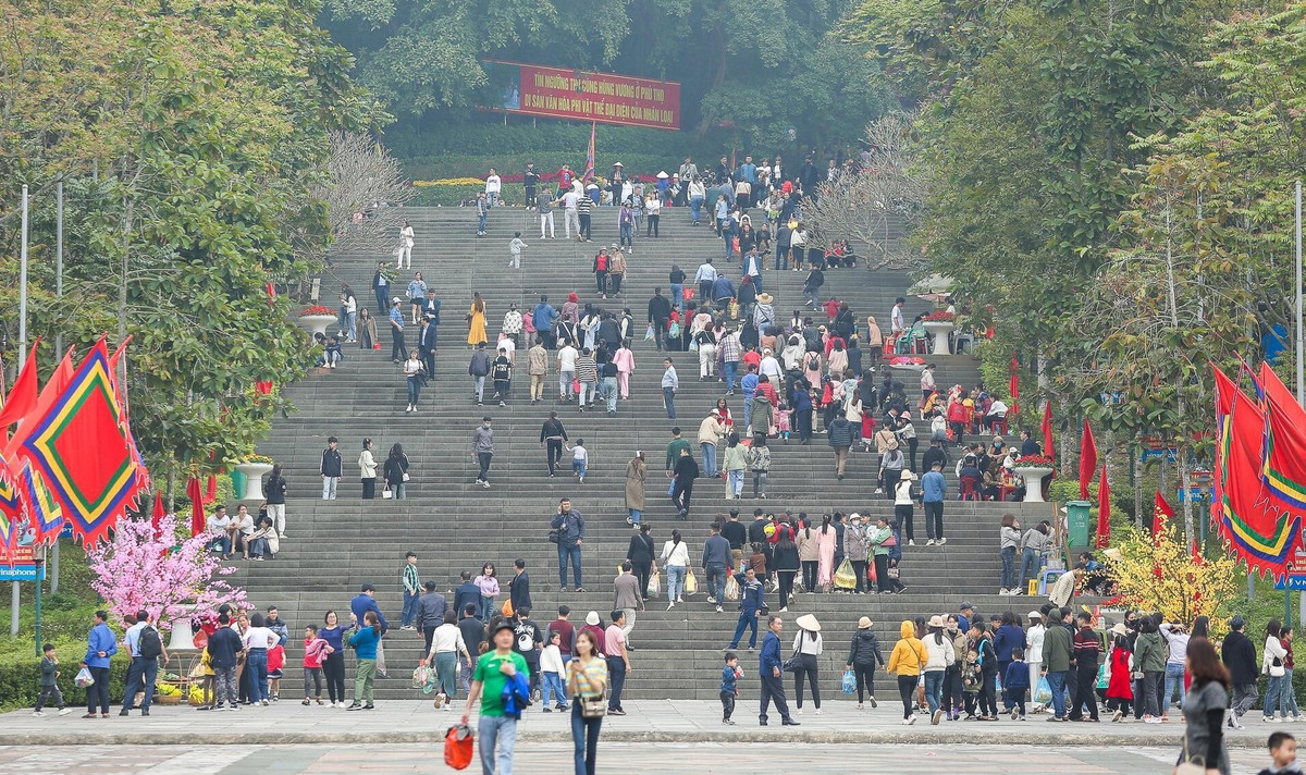 Người dân thập phương đổ về Đền Hùng dâng hương. (Ảnh: Khổng Chí)