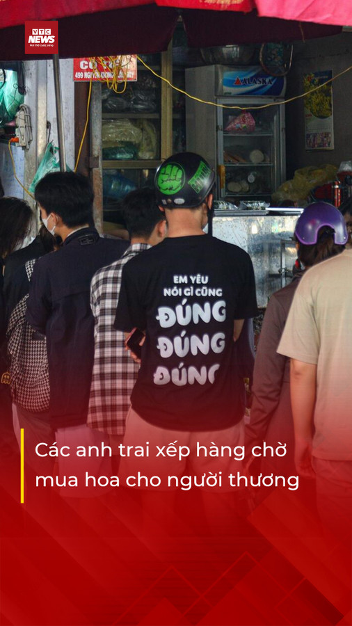 Giới trẻ chen chân xếp hàng dài chờ mua hoa cho người thương