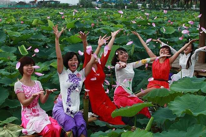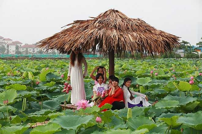 Trong những ngày mùa sen bắt đầu nở, hàng nghìn bạn trẻ và giới yêu thích nhiếp ảnh đổ về khu vực công viên nước hồ Tây (Hà Nội) để chụp ảnh (Theo Zing)