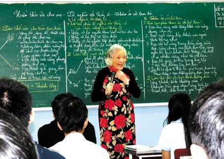 | Năm nay 82 tuổi, cô Đàm Lê Đức vẫn miệt mài trên bục giảng dạy về đức dục. |