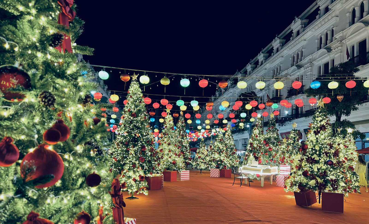Vườn thông khổng lồ tại Danko City được trang trí bắt mắt, thu hút sự chú ý của người dân trong mùa Giáng sinh 2024.