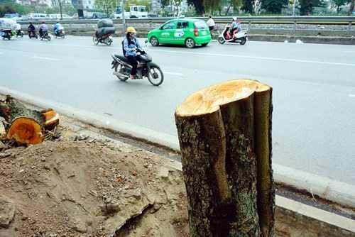 | Việc đồng loạt chặt hạ cây xanh ở Hà Nội gây bức xúc trong người dân - Ảnh: Ngọc Thắng |