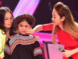 Trong khi chờ đợi quyết định của huấn luyện viên, 'ba con mắm' khóc nấc lên rồi ôm nhau rất cảm động khiến cho cả vợ chồng Hồ Hoài Anh – Lưu Hương Giang phải chạy lên sân khấu để ôm cả ba vào lòng.