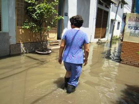 Bà Nhung tiếp lời: “Khi nào triều cường còn khổ hơn, nước cống tràn vào nhà, mùi hôi thối bốc lên nồng nặc. Mà triều rút rồi nhưng nước ngập chẳng rút theo, ứ đọng mãi mới khô. Nếu tình trạng này kéo dài chắc chúng tôi chết mất”.
