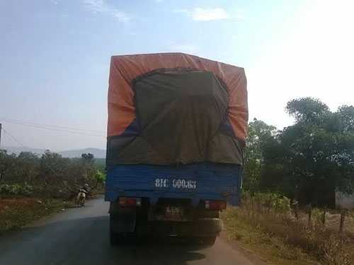 Trong khi chúng tôi đang quan sát thì thấy xe tải BKS 81M- 006...chở đầy gỗ chạy qua ngã ba biên phòng, xã Ia O, huyện Ia Grai. Chạy sau xe tải là chiếc ô tô con BKS 81C-03.. - xe chim mồi, có nhiệm vụ hộ tống, lót đường khi gặp chuyện.