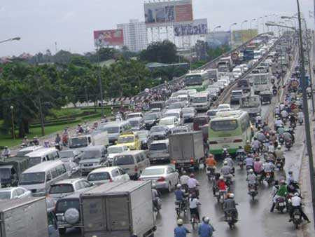 | Cầu Sài Gòn luôn ùn ứ trong giờ cao điểm |