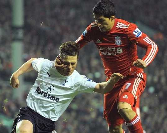 Nhưng chỉ 4 phút sau khi vào sân từ băng ghế dự bị, Suarez đã khiến toàn bộ khán giả theo dõi trận đấu “ngán ngẩm” khi thể hiện lối chơi chặt chém bằng màn tung cước vào bụng của Scott Parker bên phía Tottenham. Suarez đã nhanh chóng xin lỗi cầu thủ Tottenham lúc đó đã ngã xuống sân và ôm bụng đau đớn nhưng pha vào bóng nói trên đã không qua mặt được trọng tài.