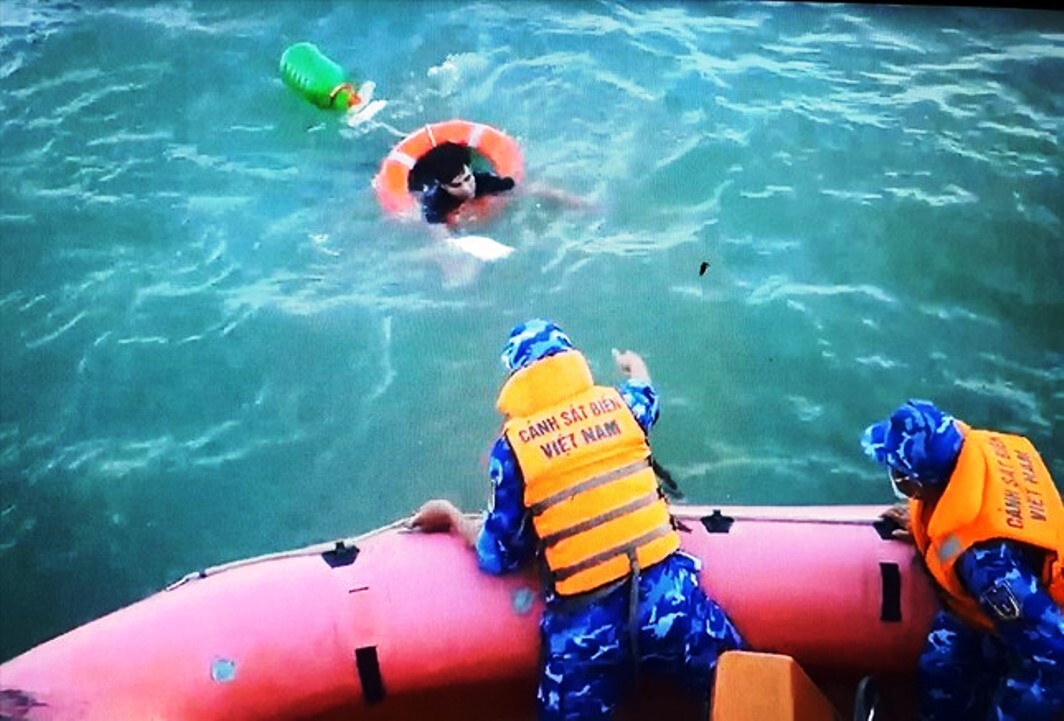 Một ngư dân đi trên tàu cá Hồng Phúc (Kiên Giang) nhảy xuống biển, trôi nổi nhiều ngày, sau đó được tàu cảnh sát biển cứu