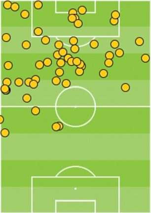 Thống kê cho thấy, Ronaldo không chơi bám biên liên tục mà buộc lòng phải di chuyển vào trung lộ- nơi MU bố trí sẵn Carrick gần như chỉ chăm chăm đảm bảo sự vững chắc cho phòng tuyến màu đỏ.