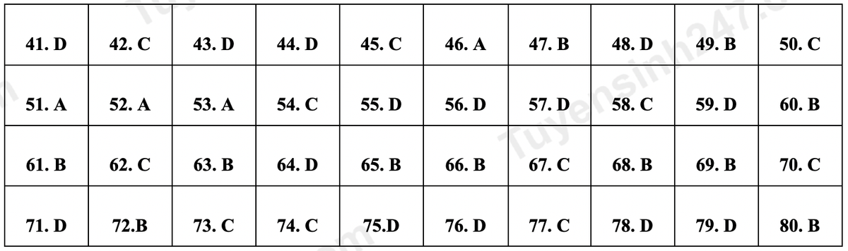 Về dạng thức câu hỏi, môn Hoá học thi theo hình thức trắc nghiệm với 50 câu hỏi khách quan với 4 lựa chọn A hoặc B, C, D.