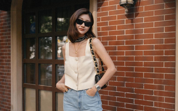Ngay cả khi diện quần jeans theo cách tối giản, đó là kết hợp cùng áo thun trắng, nàng tóc ngắn vẫn có vẻ ngoài sành điệu, ấn tượng.