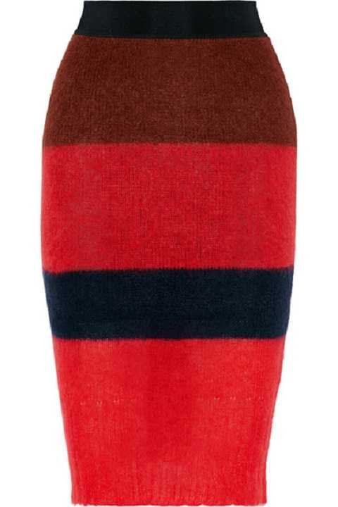 | Váy len ôm tôn dáng với những đường sọc tông màu đỏ rất hiện đại và năng động. Rất dễ để phối váy với áo trắng hoặc đen để đi làm lẫn đi chơi. |