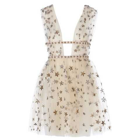 | Đầm layer bằng vải tuyn bay bổng theo từng điệu nhảy, bước chân của bạn. Hãy cân nhắc tới chiếc đầm này nếu bạn định cùng bạn bè mừng tiệc tại các câu lạc bộ hoặc quán bar nào đó nhé. Những ngôi sao metallic trên đầm sẽ biến bạn trở thành ngôi sao đích thực của bữa tiệc đấy! |