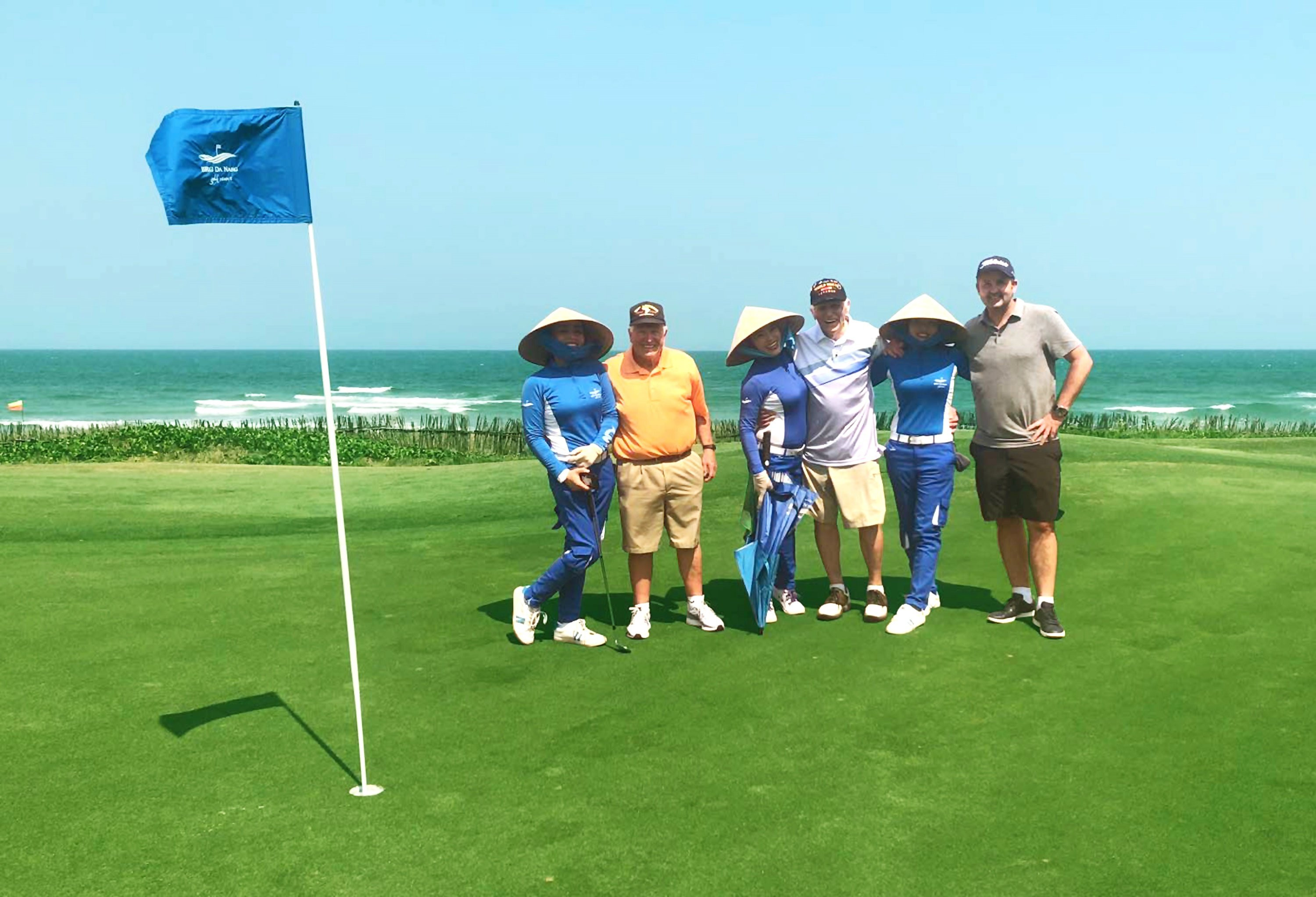 Steve Melnikoff (thứ 3 từ phải sang) tận hưởng buổi chơi gôn với những người bạn và caddie tại BRG Đà Nẵng Golf Resort.