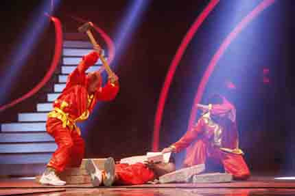 Sau phần biểu diễn võ thuật, đối kháng, các thí sinh thể hiện màn mạo hiểm: đặt một người lưng trần nằm trên những mảnh chai, mảnh sành rồi cho xe máy chở 3 người chạy qua và tiếp tục đặt những tấm bê tông (tổng là 240kg) rồi dùng búa đập vỡ. Sau màn trình diễn này, thí sinh đứng dậy vẫn bình thường với tấm lưng không xây xát.
