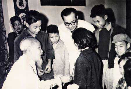 GS Chung (đeo kính) trong một lần gặp Bác Hồ