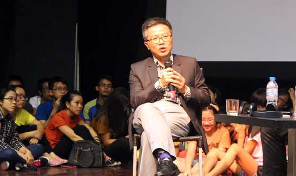 | GS Ngô Bảo Châu chia sẻ với hàng trăm bạn trẻ Thủ đô tối 24/8 (Ảnh: Nguyễn Tâm) |