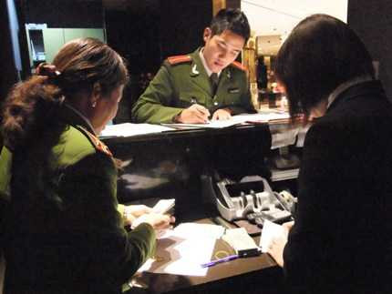 | Cơ quan Cộng an lập biên bản xử phạt đối với cửa hàng. |