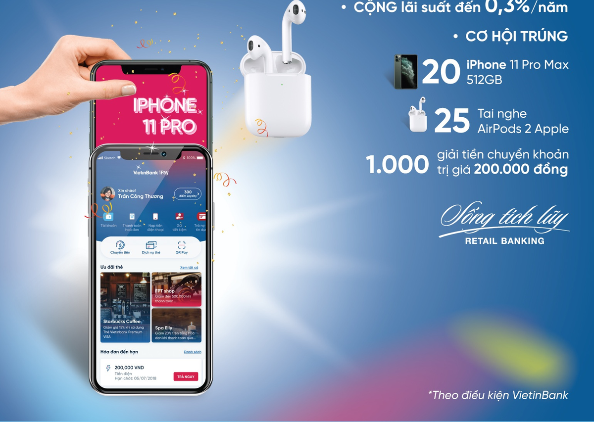Chương trình mang tới cho khách hàng cơ hội trúng thưởng hàng chục điện thoại iPhone 11 Pro Max thời thượng và hàng nghìn giải thưởng giá trị khác. Tham gia chương trình, khách hàng vừa phòng tránh được dịch bệnh khi không cần đến tận quầy mà vẫn thực hiện được giao dịch gửi tiền một cách nhanh chóng thuận tiện, an toàn, vừa được hưởng những ưu đãi hấp dẫn.