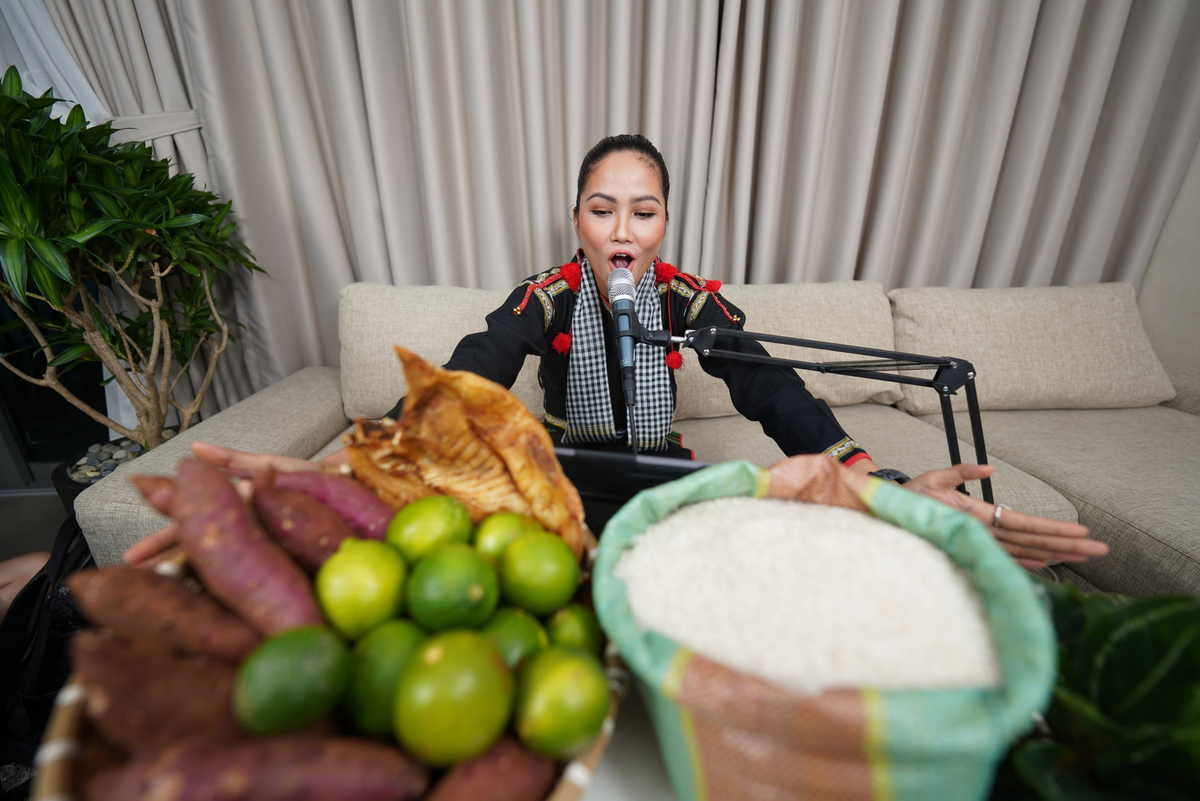 H'Hen Niê livestream bán hàng nông sản hỗ trợ bà con. (Ảnh: BTC)