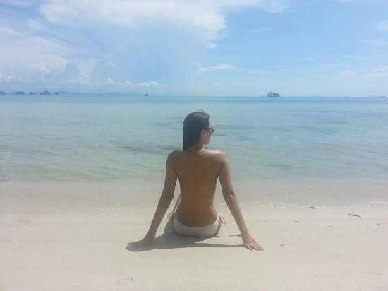 Siêu mẫu Hà Anh chia sẻ trên trang cá nhân bức hình bán nude của mình trước biển.