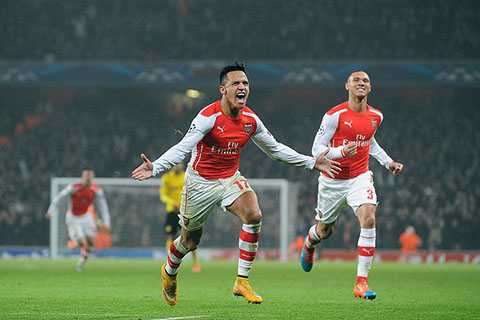 | Alexis Sanchez ăn mừng bàn thắng vào lưới Dortmund |
