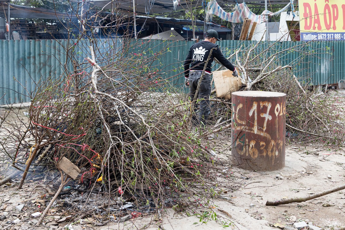Đào bị chất đống để đốt bỏ vào chiều 30 Tết.