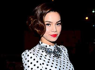 | Hà Hồ phỏng vấn ca sĩ Mỹ trên truyền hình đêm Chung kết The Voice Vietnam 2012. |