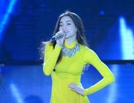 Nữ ca sỹ diện áo dài vàng rực khoe vóc dáng chuẩn. Năm nay, Hồ Ngọc Hà sẽ gửi đến khán giả cả nước một khúc ca xuân vui tươi và ý nghĩa để mở màn cho phần ba của chương trình, mở đầu cho thời khắc tạm biệt năm cũ và chào đón năm mới.