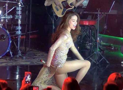 | Hình ảnh Hồ Ngọc Hà biểu diễn với trang phục xuyên thấu được chia sẻ nhiều. |