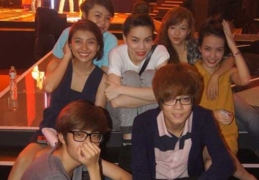 (VTC News) - Hà Hồ đã có những phút thư giãn thoải mái khi ngồi bệt trên sân khấu tổng duyệt The Voice pose ảnh cùng thí sinh.