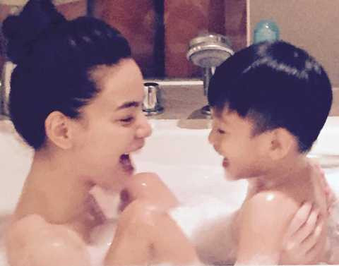 Hồ Ngọc Hà chia sẻ hình ảnh hai mẹ con chơi đùa trong bồn tắm rất tình cảm.