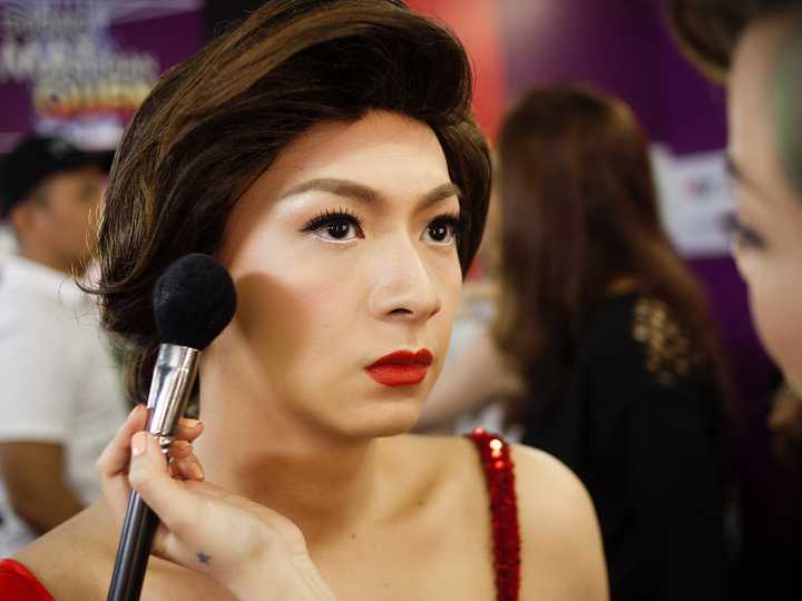 Nước da sáng của anh chàng ca sỹ này nay bỗng trở thành lợi thế khi phải hóa trang thành nữ hoàng giải trí. Ngô Kiến Huy cho biết: 'Việc hóa trang thành Hồ Ngọc Hà là thử thách mới đối với mình.