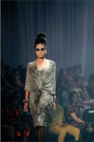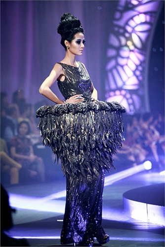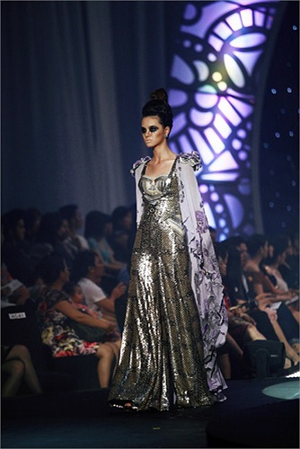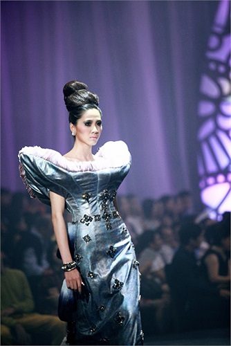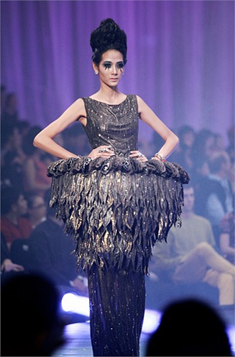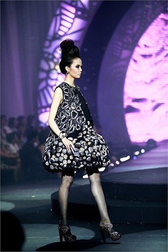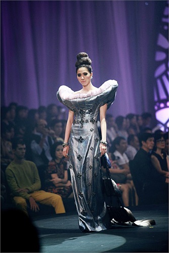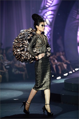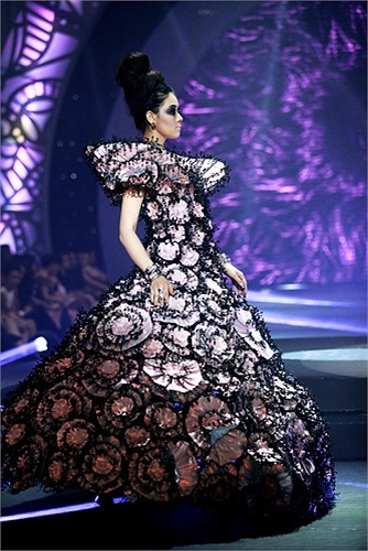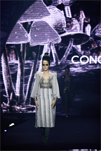 Hình tượng nấm được cách điệu, chuyển hóa thành những chi tiết trên trang phục, theo đó là những bố cục theo cấu trúc đối xứng, hàng lối lập lại, thậm chí tự do và xáo trộn