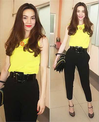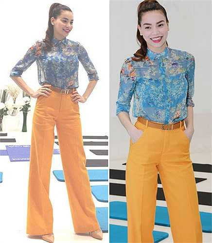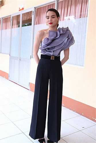Quần ống rộng: Quần ống rộng cũng là kiểu quần rất thích hợp với vóc dáng khẳng khiu của Hồ Ngọc Hà đồng thời tạo nên một phong cách rất đẳng cấp.