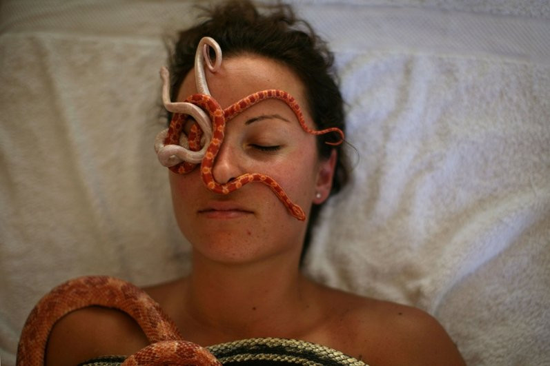 Cách mát-xa này rất đơn giản, bạn chỉ việc nằm yên để người ta thả lên người bạn một bầy trăn và rắn để chúng trườn và ngọ nguậy khắp người bạn. Chuyển động của chúng trên người bạn cộng với chất adrenaline mà cơ thể bạn tiết ra vì sợ hãi sẽ giúp thúc đẩy quá trình trao đổi chất.