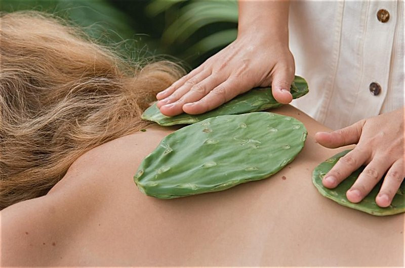 Tất nhiên, những miếng xương rồng đều đã được loại bỏ gai trước khi chúng được dùng để mát-xa cơ bắp. Và khi mát-xa, người ta còn dùng kèm những loại dầu thơm chiết suất từ hương hoa, thảo mộc thơm, và rượu tequila