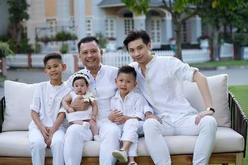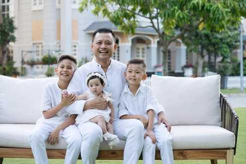 | Chồng Hà Kiều Anh hạnh phúc bên các con. |