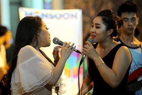 | Bằng những ca khúc quen thuộc của mình, các ca sỹ đã khuấy động bầu không khí trở nên sôi động và thu hút hàng trăm bạn trẻ có mặt tại đây. |