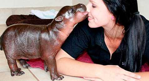 Một nhân viên chăm sóc thú có tên Lisa Van Oten, yêu loài hà mã vô bờ bến. Cô đã nhận chú hà mã lùn này làm ‘con nuôi’.