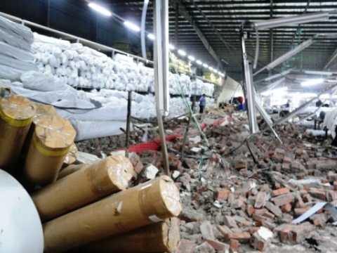 Theo nhận định ban đầu, nguyên nhân dẫn tới sập tường có thể là do sức ép từ những cuộn vải lớn xếp ở phía sau.