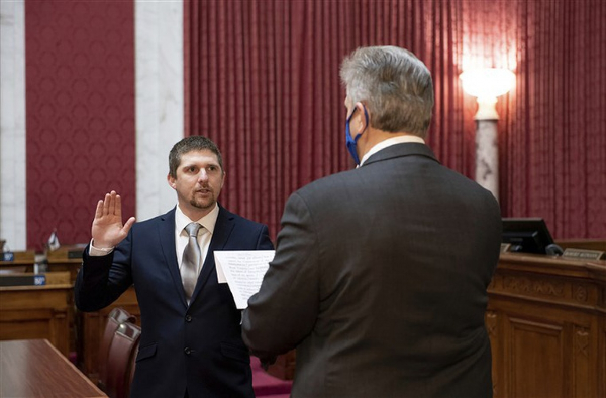 Nhà lập pháp đảng Cộng hòa ở Tây Virginia Derrick Evans vừa nhậm chức hồi tháng trước. Ảnh: AP