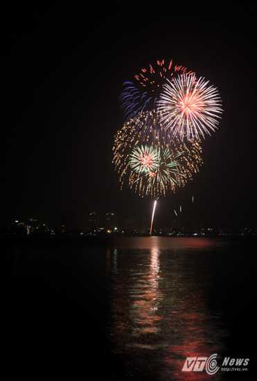| Pháo hoa lung linh bên hồ Tây dịp kỷ niệm 60 năm ngày Giải phóng Thủ đô 10/10/2014. |