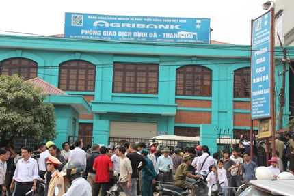 Đến trưa 12/11, hàng trăm người dân ở quanh khu vực xảy ra vụ án mạng kéo nhau đến trước trụ sở Phòng giao dịch ngân hàng Agribank Bình Đà (huyện Thanh Oai) để xem cảnh sát khám nghiệm hiện trường.
