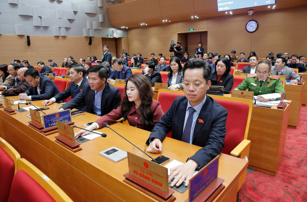 Các đại biểu HĐND TP Hà Nội biểu quyết thông qua các nghị quyết.