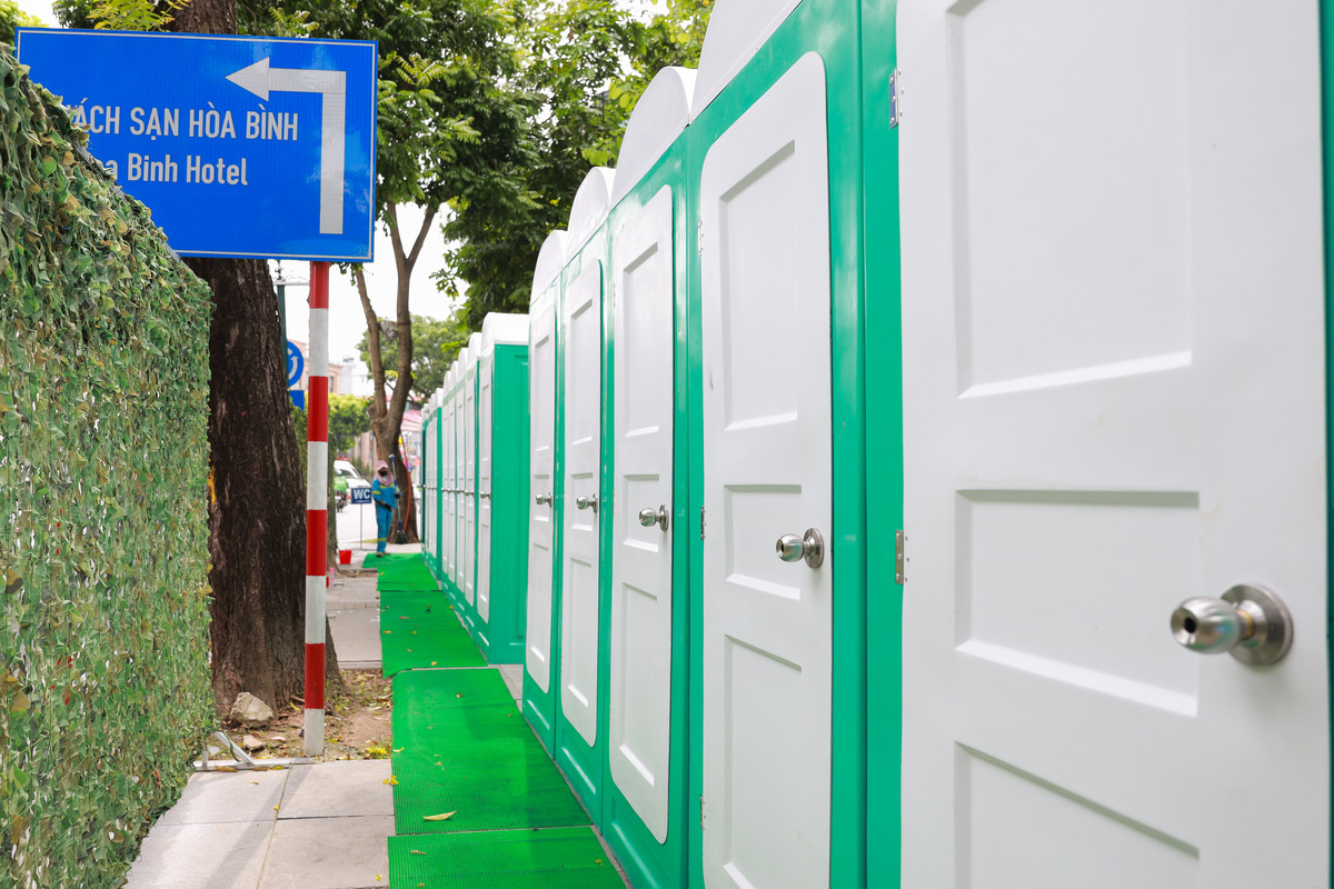 Theo ghi nhận chiều 17/8, nhiều nhà vệ sinh lưu động đang được lắp đặt trên phố Phan Đình Phùng.