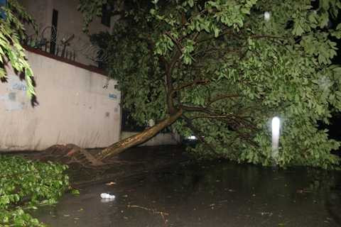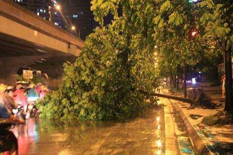 Chiều 18/5, Hà Nội xuất hiện cơn mưa lớn kèm theo gió to, dù không gây ngập lụt trên diện rộng nhưng một số tuyến phố đã bị ùn ú nước. Đặc biệt nhiều cây xanh đã bị bật gốc.