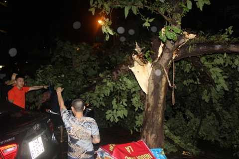 | Cây bật gốc trên đường Phạm Hùng. |