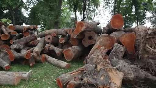 Theo ghi nhận của phóng viên, hàng loạt cây xà cừ nhiều năm tuổi đã bị chặt hạ, cắt ra thành từng khúc nằm ngổn ngang trong Công viên Thống Nhất (quận Hai Bà Trưng, Hà Nội). Nhiều cây có đường kính gần 1m, cao hơn 10m.